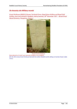 (On the 1911 census Ernest Porthouse lived with his mother Elizabeth and his siblings at Evesham Road, Crabbs