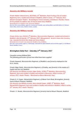 Regiment), born, resided and enlisted in Redditch, killed in action, 17 February 1917,