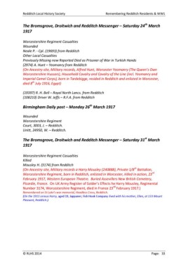 Redditch Local History Society Remembering Redditch Residents & WW1
