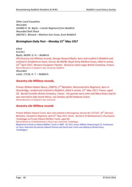 Remembering Redditch Residents & WW1 Redditch Local History Society