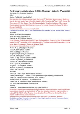 Redditch Local History Society Remembering Redditch Residents & WW1