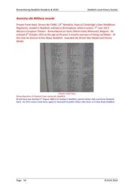 Remembering Redditch Residents & WW1 Redditch Local History Society