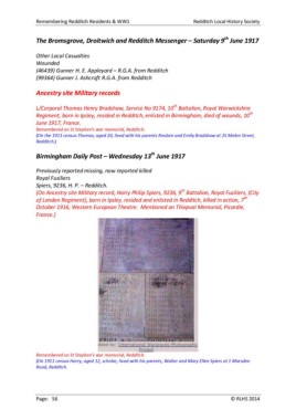 Remembering Redditch Residents & WW1 Redditch Local History Society
