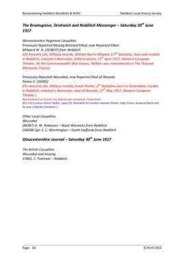 Remembering Redditch Residents & WW1 Redditch Local History Society