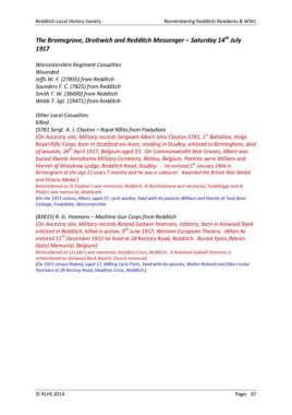 Redditch Local History Society Remembering Redditch Residents & WW1