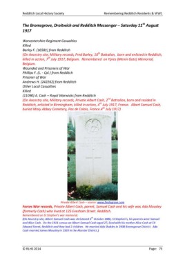 Redditch, enlisted in Birmingham, killed in action, 4 July 1917, France. Albert Samuel Cash,