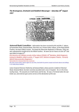 Remembering Redditch Residents & WW1 Redditch Local History Society