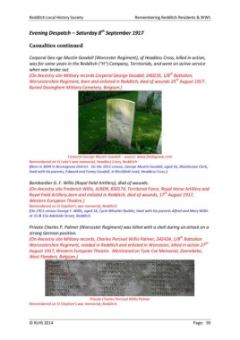 Redditch Local History Society Remembering Redditch Residents & WW1