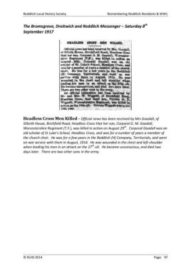 Redditch Local History Society Remembering Redditch Residents & WW1