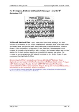 Redditch Local History Society Remembering Redditch Residents & WW1