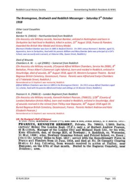 Redditch Local History Society Remembering Redditch Residents & WW1