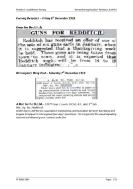 Redditch Local History Society Remembering Redditch Residents & WW1
