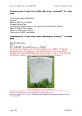 Remembering Redditch Residents & WW1 Redditch Local History Society
