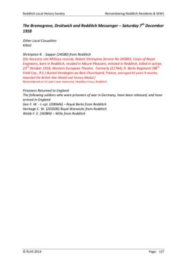 Redditch Local History Society Remembering Redditch Residents & WW1