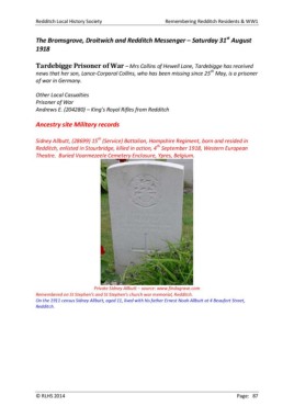 Redditch Local History Society Remembering Redditch Residents & WW1