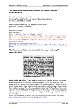 Redditch Local History Society Remembering Redditch Residents & WW1