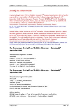 Berkshire Regiment), born in Alcester, resided in Redditch, enlisted in Worcester, killed in