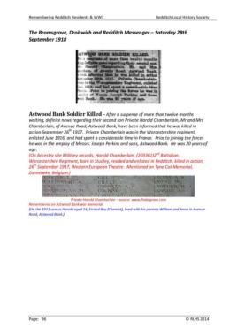 Remembering Redditch Residents & WW1 Redditch Local History Society