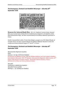 Redditch Local History Society Remembering Redditch Residents & WW1