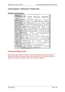 Redditch Local History Society Remembering Redditch Residents & WW1