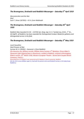 Redditch Local History Society Remembering Redditch Residents & WW1