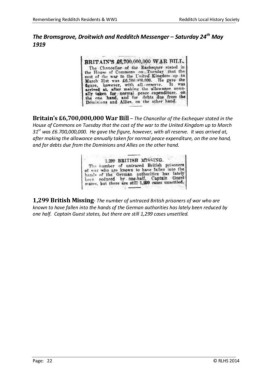 Remembering Redditch Residents & WW1 Redditch Local History Society