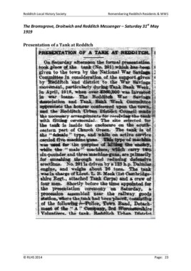 Redditch Local History Society Remembering Redditch Residents & WW1 st The Bromsgrove, Droitwich and Redditch Messenger – Saturday 31 May 1919 Presentation of a Tank at Reddtch © RLHS 2014 Page: 23