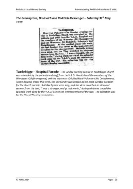 Redditch Local History Society Remembering Redditch Residents & WW1