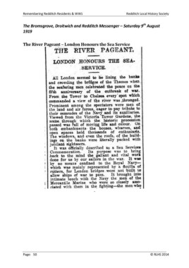 Remembering Redditch Residents & WW1 Redditch Local History Society th The Bromsgrove, Droitwich and Redditch Messenger – Saturday 9 August 1919 The River Pageant – London Honours the Sea Service - Page: 50 © RLHS 2014