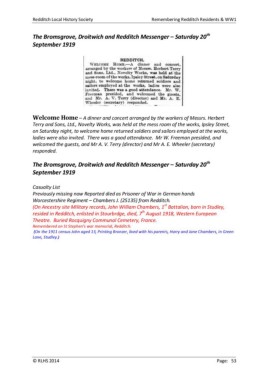 Redditch Local History Society Remembering Redditch Residents & WW1