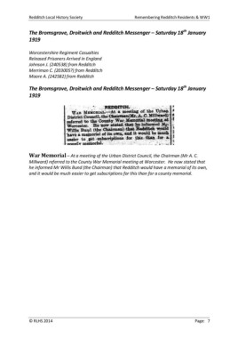 Redditch Local History Society Remembering Redditch Residents & WW1