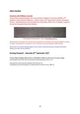Private Albert Bradley (Worcesters), of Redditch, killed in action was 31 years of age.