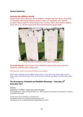 Private Horace Victor Chatterley, born in Redditch, enlisted in Warwick, Service No G17032,