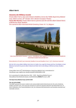 Private Albert Harris, born and enlisted in Redditch, Service No 74389, Royal Army Medical
