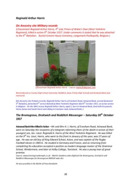 (On Ancestry site Probate records, Reginald Arthur Harris of Evesham Road, Astwood Bank, second lieutenant