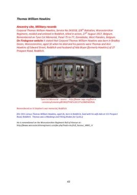 (On 1911 census Thomas William Hawkins, aged 26, born in Redditch, lived with his wife Ada at 113 Prospect