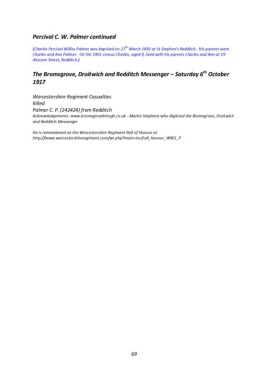 (Charles Percival Williss Palmer was baptised on 27 March 1892 at St Stephen’s Redditch. His parents were