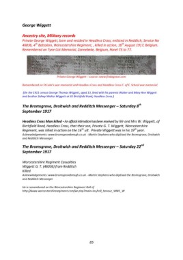 Private George Wiggett, born and resided in Headless Cross, enlisted in Redditch, Service No