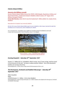 Gunner C. E. Wilkes (R.F.A.), of Redditch, killed in action, was 27 years of age, and has served