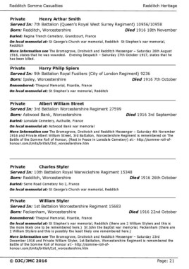 Redditch Somme Casualties Redditch Heritage